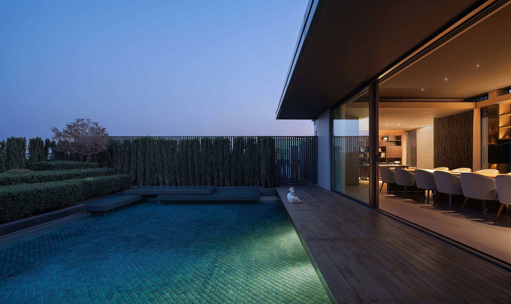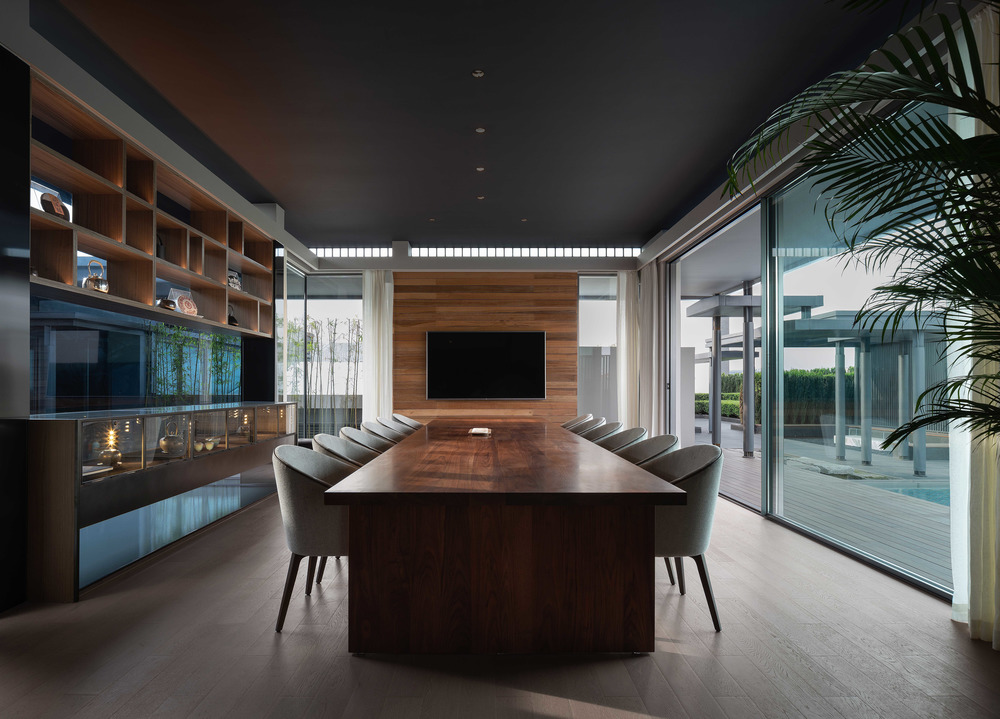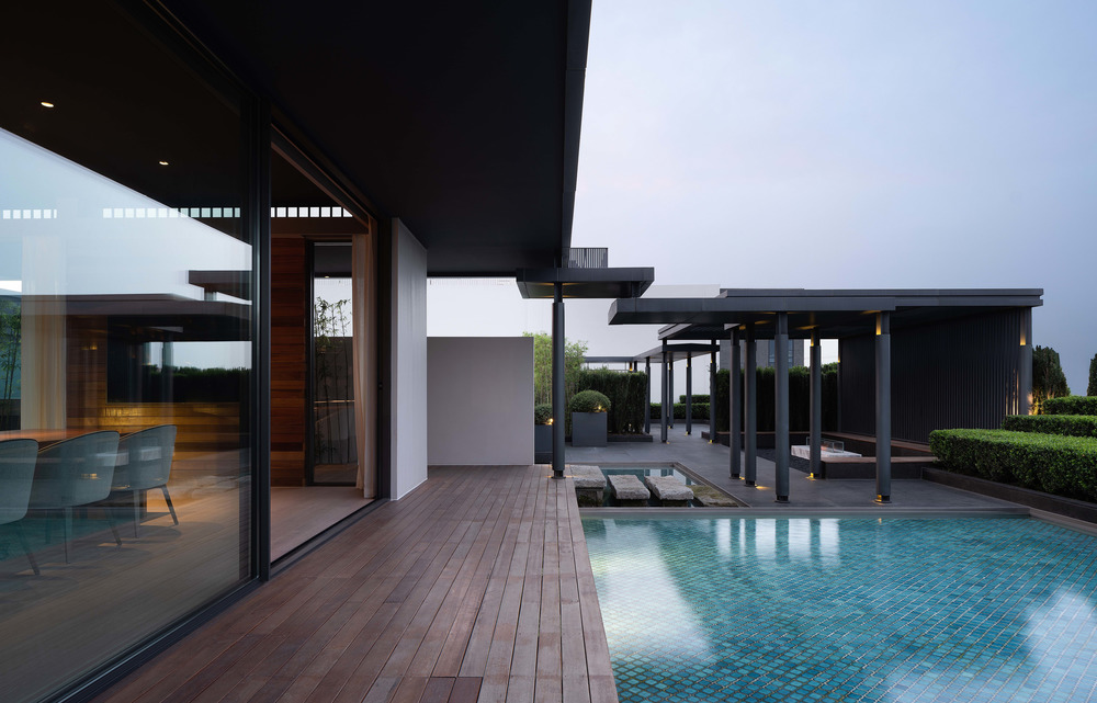 How to deal with the relationship between architecture and environment has to be the first research focus of the design. The place is adjacent to the main road of the city, and there are many self-built houses in the surrounding countryside. So the designer uses green plants as walls to shield from the noise on the road and disorder of vision, which has embodied the concept of oriental gardens by modern garden methods and created an atmosphere of being in the city but like a wild place.