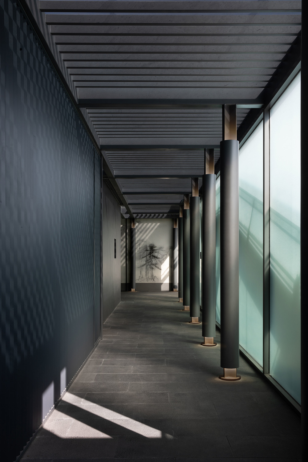 They utilize the natural sightline deviations of the roof platform to balance the surrounding axis, and the phototaxis of the biological instinct to allow the viewer to do the natural selection. The architecture is opened, and the interior and exterior spaces are infiltrated with each other, both spacious and enclosed.