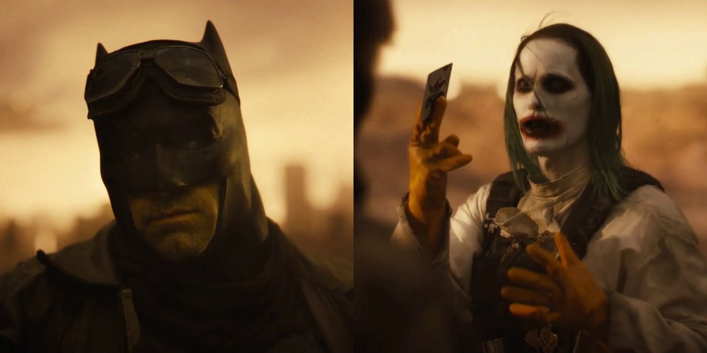 Arguably the most fan-pleasing scene in all of Zack Snyder's Justice League is the Knightmare conversation during the movie's epilogue between Batman (Ben Affleck) and The Joker (Jared Leto). This marked the first time these two iconic foes have ever interacted in the DCEU, and it occurred in the dark DC future where the two of them are uneasy allies. The Joker card that symbolizes their shaky truce first appeared in the Batman V Superman vision scene, where it's stuck to Batman's gun. If the DCEU brings back Batman and Joker in a movie, it will have to reference or set up their future alliance.