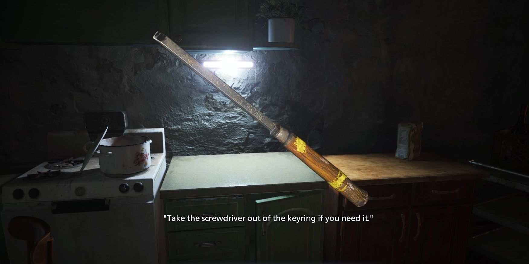 Inspect the Truck Key in Ethan’s inventory to remove the screwdriver. Presto, Ethan Winters is now the proud owner of the screwdriver.
