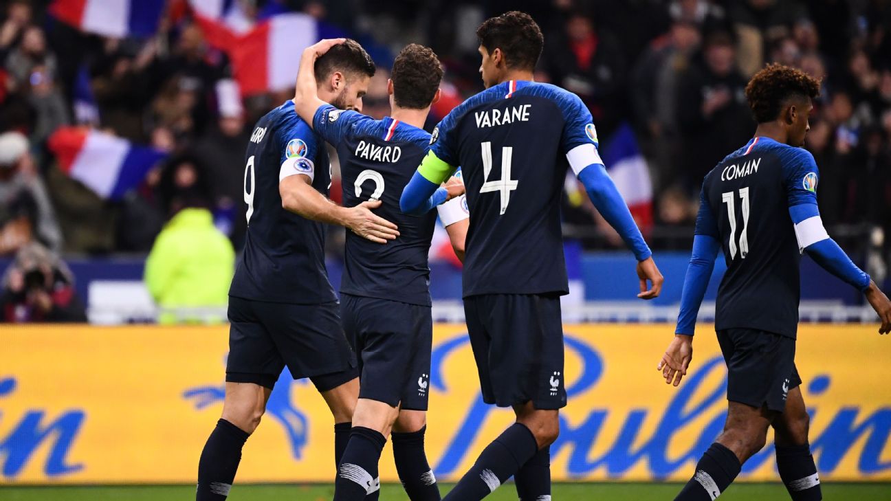 France's efforts to celebrate their qualification for Euro 2020 were almost spoiled by Moldova, with an Olivier Giroud penalty sparing their blushes as they came from behind to win 2-1 and go top of Group H on Thursday.